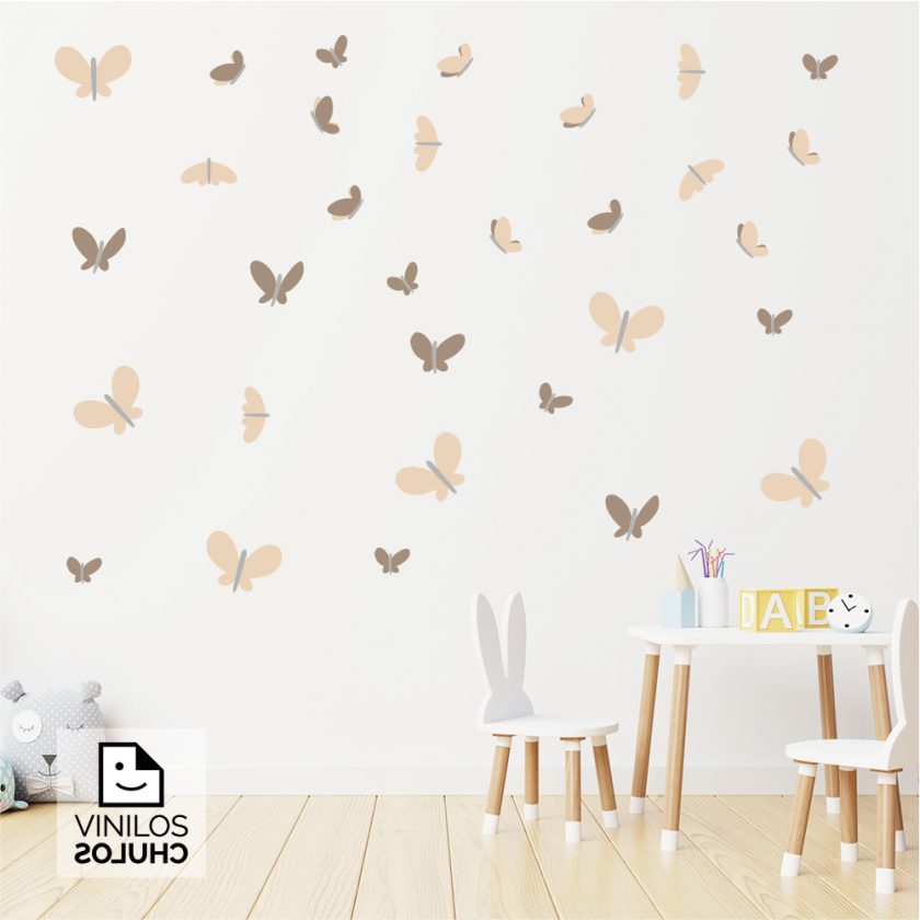 Conjunto de Mariposas en vinilo en color marrón y gris